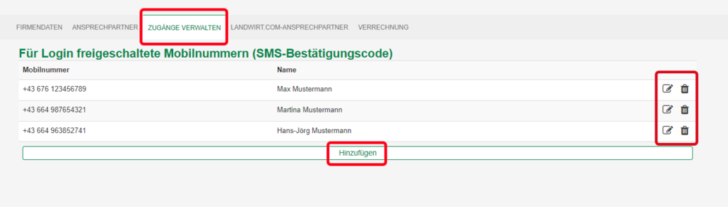 Für Neukunden trägt das Landwirt.com Sales-Team eine angegebene Handynummer ein, damit der Login erstmals funktioniert. Um diese Nummer zu ändern bzw. eine neue hinzuzufügen, gehen Sie bitte wie folgt vor: